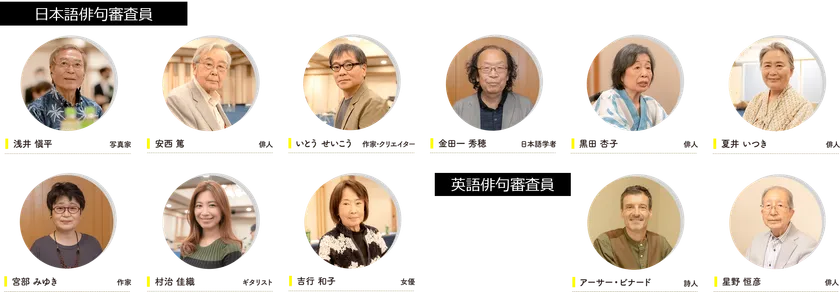 また選考は、一流の俳人に加え、浅井愼平さん、いとうせいこうさん、金田一秀穂さん、宮部みゆきさん、村治佳織さん、吉行和子さんといった、様々の分野の表現者が参加しており、俳句以外の視点からも審査いたします。