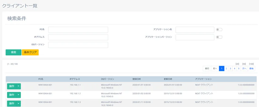 クライアント設定の配信、クライアント自動アップデート、バージョン情報を含めたクライアント一覧、サイレントインストールにより、初回導入時や運用中のバージョンアップの展開、確認が容易です。