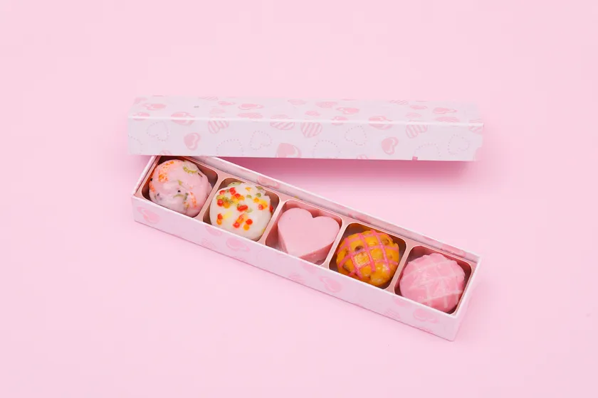 ちょっとしたプレゼントに気軽に使いやすいよう3個入りと5個入りの2種類をご用意。ハートをデザインしたかわいらしい小箱にパッケージしています。