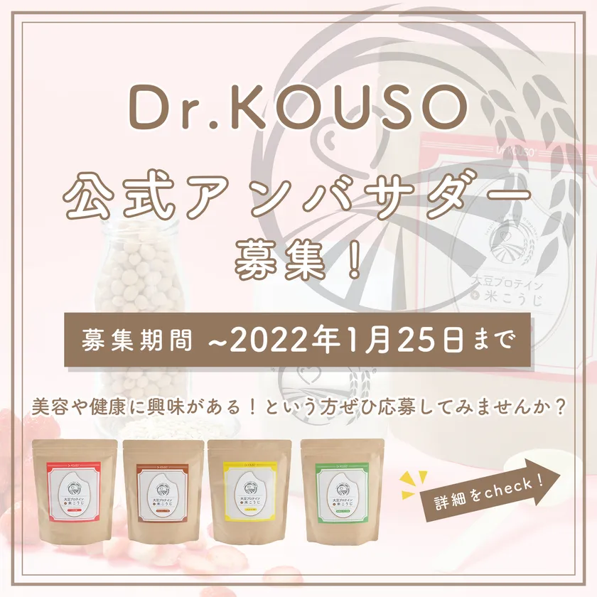 女性のための米こうじ入り大豆プロテイン「Dr.KOUSO」 2022年第1期公式アンバサダー大募集!