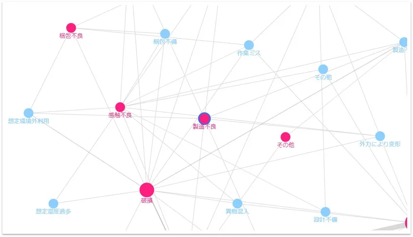 連関図は、問題や要因のノード(丸印)をマウスドラッグで移動可能