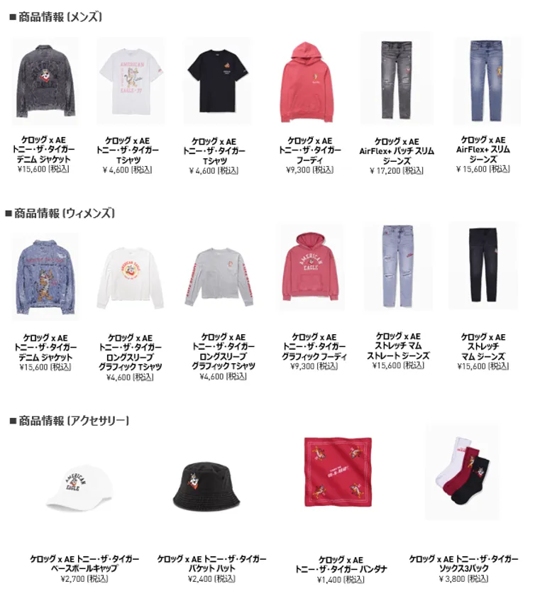 アメリカン・イーグルとKellogg'sの 初コラボレーションコレクション 寅年に因み“Tony the Tiger”がデザインされた 全25アイテムを1月15日に発売