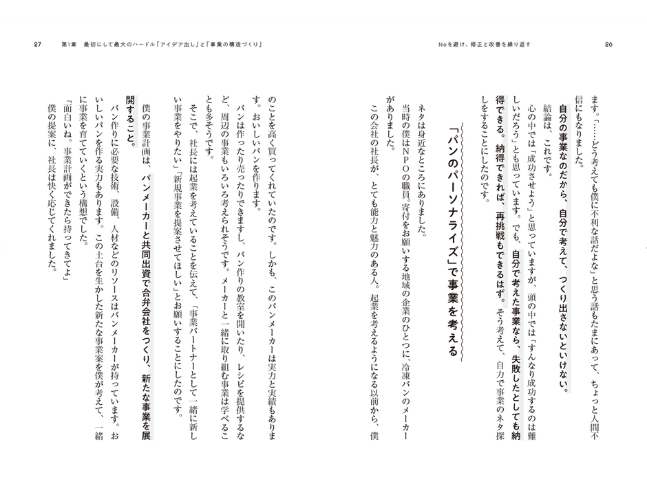 しかし、そうなった理由がわかれば対策できます。 詳しくは本文で紹介しますが、僕自身、大小を問わず数え切れないほどの失敗をしてきました。それでも歩みを止めなかったのは、対策を講じて前進している感覚があったからであり、何より事業開発の楽しさに気づいていったからです。