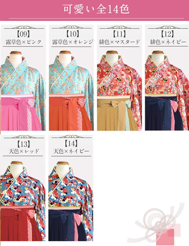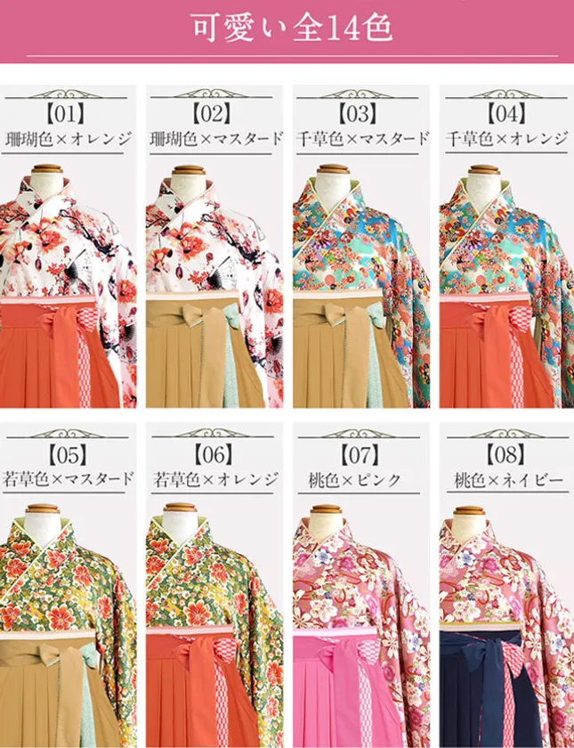 (着物7柄×2色の袴スカートの組み合わせからお選びいただけます。)