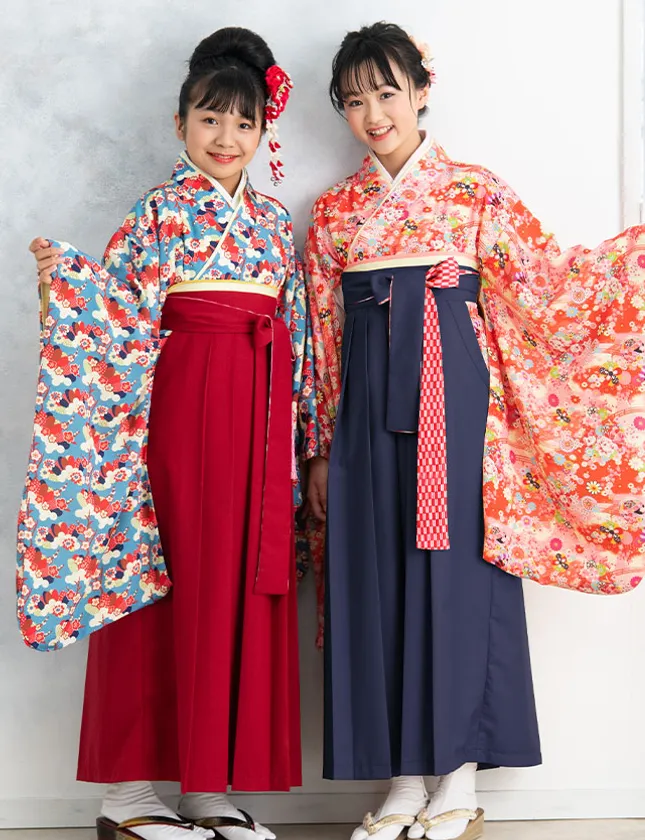 今期発表するのは、小学校の卒業式にすっかり定番となった本格袴。ベビー袴よりもちょっぴり大人っぽい華やかな和総柄をあしらった着物部分と、身長に合わせて丈が選べる袴スカートの組み合わせです。全14色展開でファッションにこだわりのある女の子も自分らしい組み合わせができます。