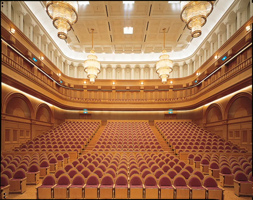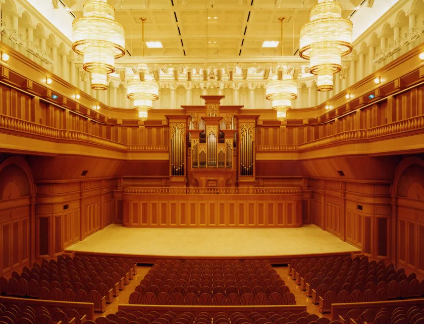 708席というクラシック音楽を楽しむには絶好の大きさと残響2.1秒(空席時)という響きがサラマンカホールの特徴です。ピアニッシモの音が力を失わず客席の隅々に伝わり、オーケストラのフォルティッシモも柔らかさを失わない響きで観客を包みます。後方の席でも、音響的にも視覚的にも遠さも感じさせないホールです。