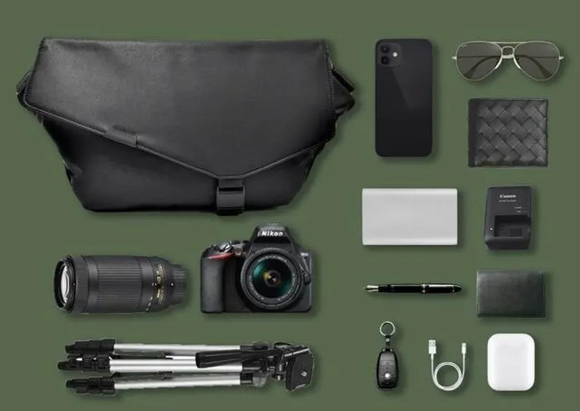 1. コンパクトでエキスパンダブル(拡張可能)なスリングバッグ。拡げれば一眼レフカメラも収納可能