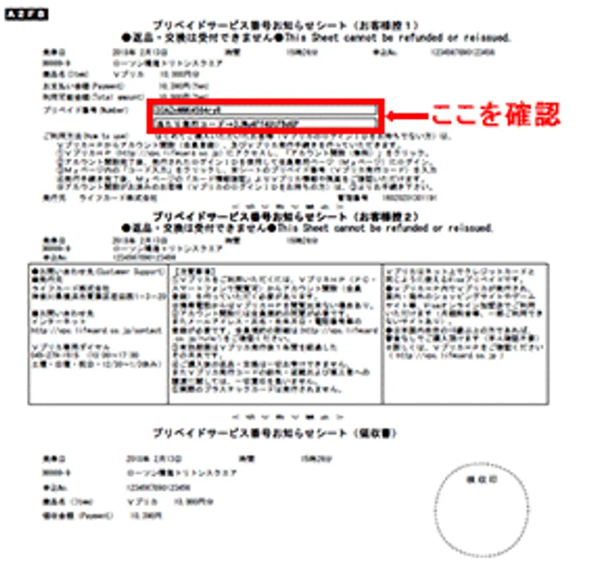 ※Vプリカ発行コードは大切な番号です。絶対に第三者へ渡したり教えたりしないでください。