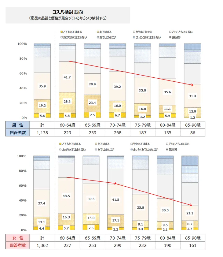 高齢になるほど商品選びがおっくうになり、コスパ検討志向も低下。「考える買い物」から遠ざかる