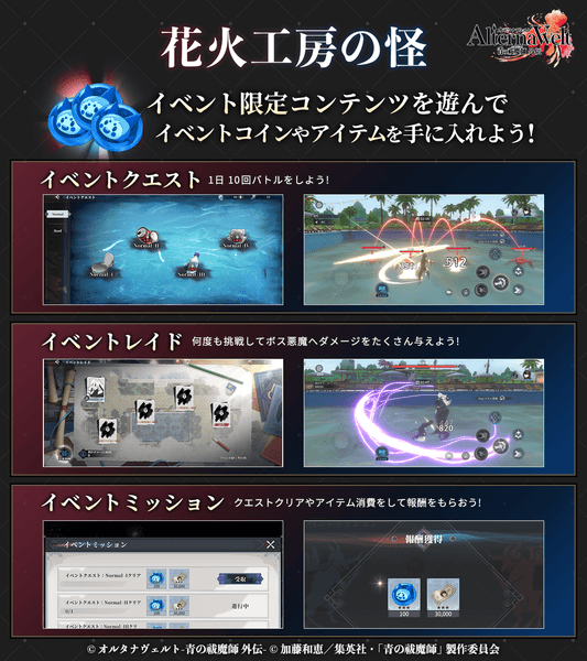 ゲーム『オルタナヴェルト -青の祓魔師 外伝-』期間限定イベント「花火工房の怪」を開始!