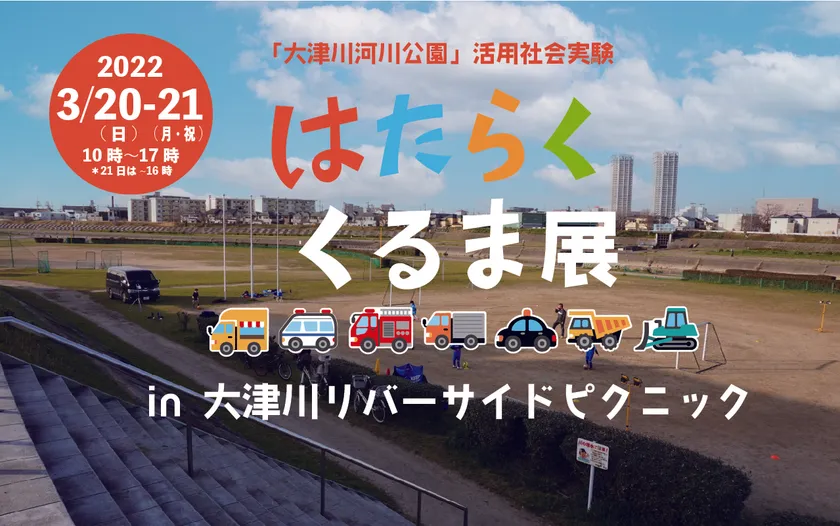 大津川河川公園活用社会実験 「はたらく車展 in 大津川リバーサイドピクニック」 令和4年3月20・21日実施 ~参加企業・事業者等募集!~