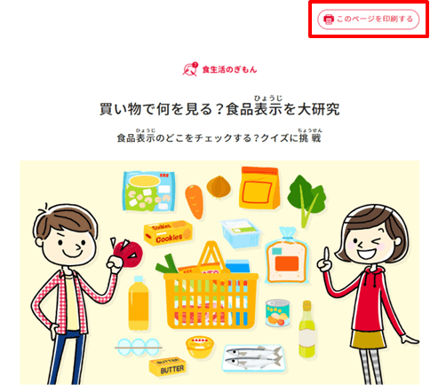 今回公開した「買い物で何を見る?食品表示を大研究」は、食品表示は、どうして必要で、何がチェックポイントなのかを解説し、最後にクイズに挑戦する内容になっています。