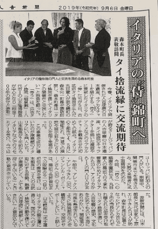 これまで兵法タイ捨流の海外活動を町のプロモーション活動としてとらえ支援を行っている。2017年には、日本の文化を紹介する兵法タイ捨流の活動と共に錦町もイタリアトリノ市長より感謝状を受けている。