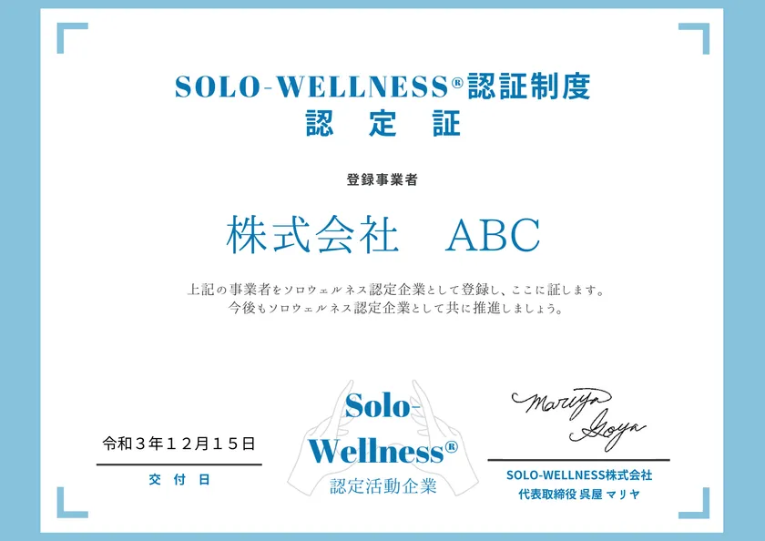 ソロウェルネス推進事業を展開するSolo-Wellness株式会社(所在地:東京都中央区、代表取締役:呉屋 マリヤ)は、“一人で出来るウェルネス”を推奨、または既に取り組み実績がある企業向けに「Solo-Wellness(R)認証制度」を開始いたしました。