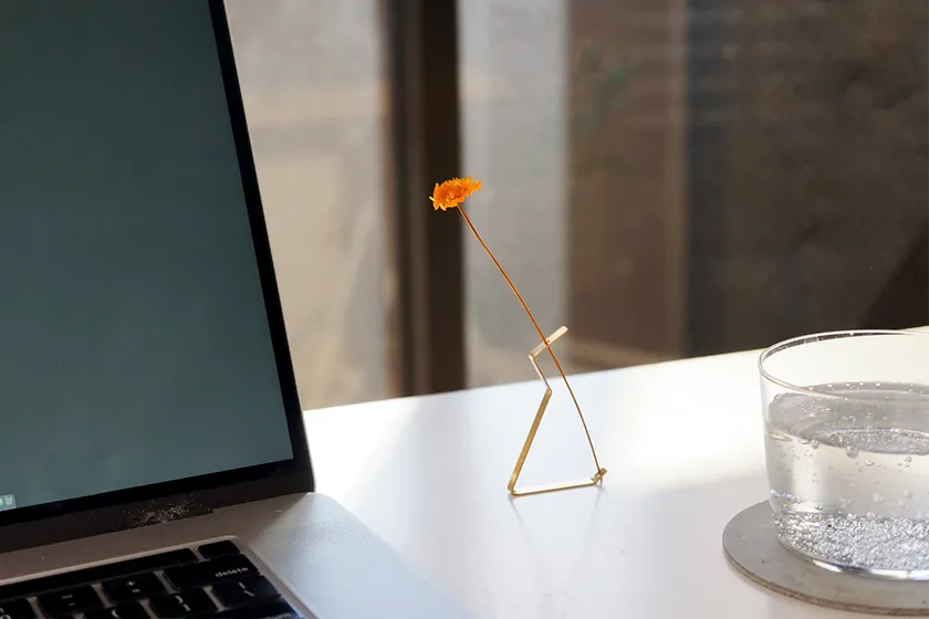厚さ0.7ミリの真鍮板で作られたシンプルで軽快なデザイン。