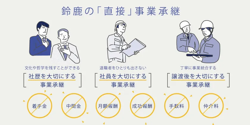 株式会社鈴鹿(所在地:三重県鈴鹿市、代表取締役:瀬古 恭裕、以下 当社)は、2022年2月より「直接」事業継承への取り組みを本格的に展開いたします。長引く新型コロナウイルス感染症拡大により多くの企業は依然として厳しい状況下にあり、倒産、事業の縮小や後継者不足が大きな課題となっています。当社はこのような時代にこそ、より多くの企業に貢献すべく、後継者にお悩みの経営者が多額の手数料を心配することなく、会社や社員を大切に守りながら、安心して会社を譲り渡すことができる「直接」事業承継を本格始動してまいります。