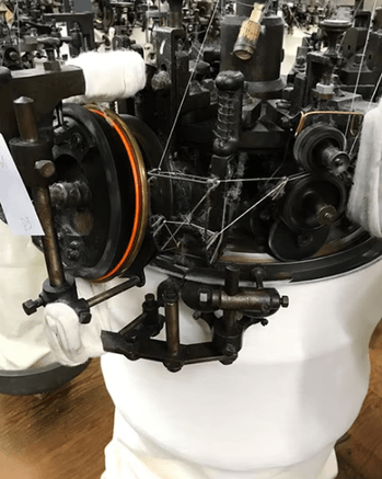 『吊り編み機』とは、明治40年代から大正初期にかけてヨーロッパから和歌山に入った機械で、戦後には高級肌着を編むために使用されていました。