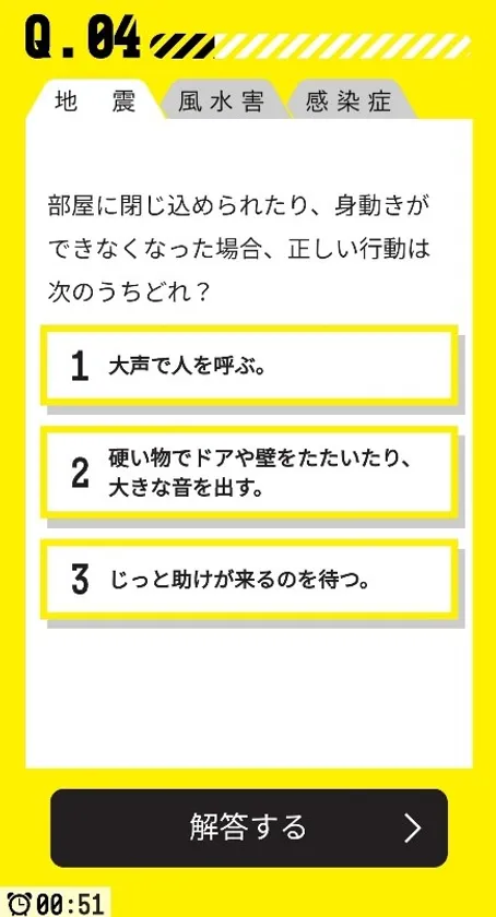 東京都が主催・実施するもので、スマートフォン等を利用して気軽に防災について学べます。模試という形式を採用することで、都民の防災に対する意識向上を促進します。