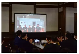 酒器の公開審査会を2021年12月15日に開催。会場と台湾をオンラインでつなぎ、学生自身によるプレゼンテーションや質疑応答が行われ、メディア関係者10数社が参加し、各社による取材が行われました。
