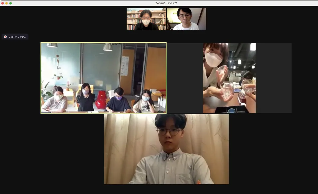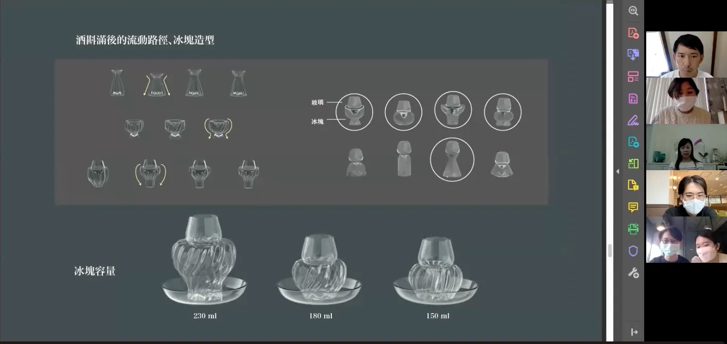 京都の審査会会場と台湾とをオンラインでつなぎ、公開審査会を行いました。当日は台湾学生によるオンラインプレゼンテーションが行われ、それぞれの酒器のコンセプトや想いなどをプレゼンしました。