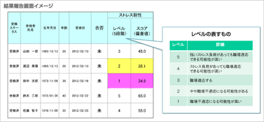 ストレス耐性レベル・スコアの結果一覧表(Excelデータのダウンロード可能)