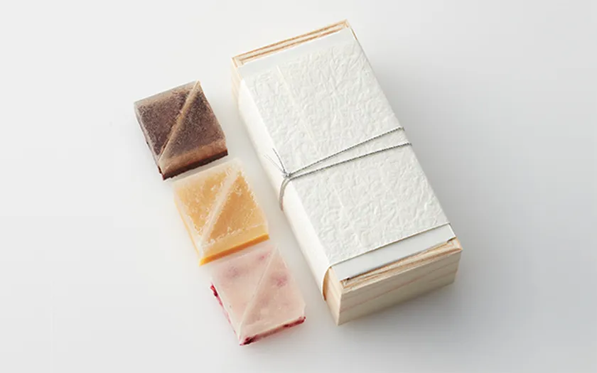 軽い口あたりと弾むような食感が特徴の錦玉羹(きんぎょくかん)。洋酒とショコラの二層仕立てでお届けします。