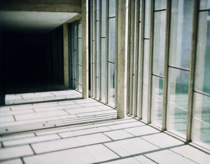 クセナキスが「オンデュラトワール(波状の)」(注2)と名付けた不均質な幅にデザインされたルーバーは、ラトゥーレット修道院という空間に音楽的な要素を加えることを高度に成功させており、この建築空間に新たな解釈を作り出している。彼の作った開口部に差し込む太陽の光は譜面である窓枠を通して影を地面に創り出し、閉鎖的な修道院という空間の中で続く修行の1日、1年といった日々が、周期の中で揺らぎながら変化していることを気がつかせる瞑想的な場となる。この揺らぎこそが「オンデュラトワール」であり、ここで光と影によって奏でられ続ける管弦楽曲のタイトルであるとも言える。