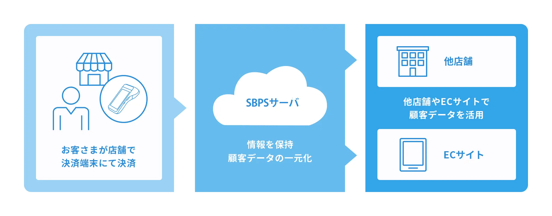 実店舗とECサイトの決済情報を一元化し、双方の決済情報をリアルタイムに確認できるとともに、決済データの利活用・分析が可能になります。また、継続課金システム※1にも対応しており、月額利用料のお支払いや定期購入の仕組みを提供することができます。なお、実店舗でクレジットカード情報を登録することでECサイトでは会員ID情報のみで買い物ができるなど、シームレスな購買体験の環境を提供します。