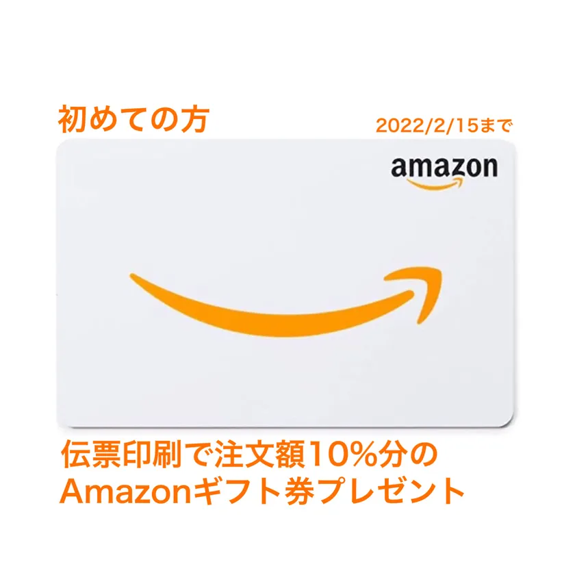 キャンペーン内容は、2022年2月15日(火)までに、初めて米村印刷に注文した方への初回限定特典として「Amazonギフト券のプレゼント」もしくは「10%の値引き」いずれかを選択いただけます。