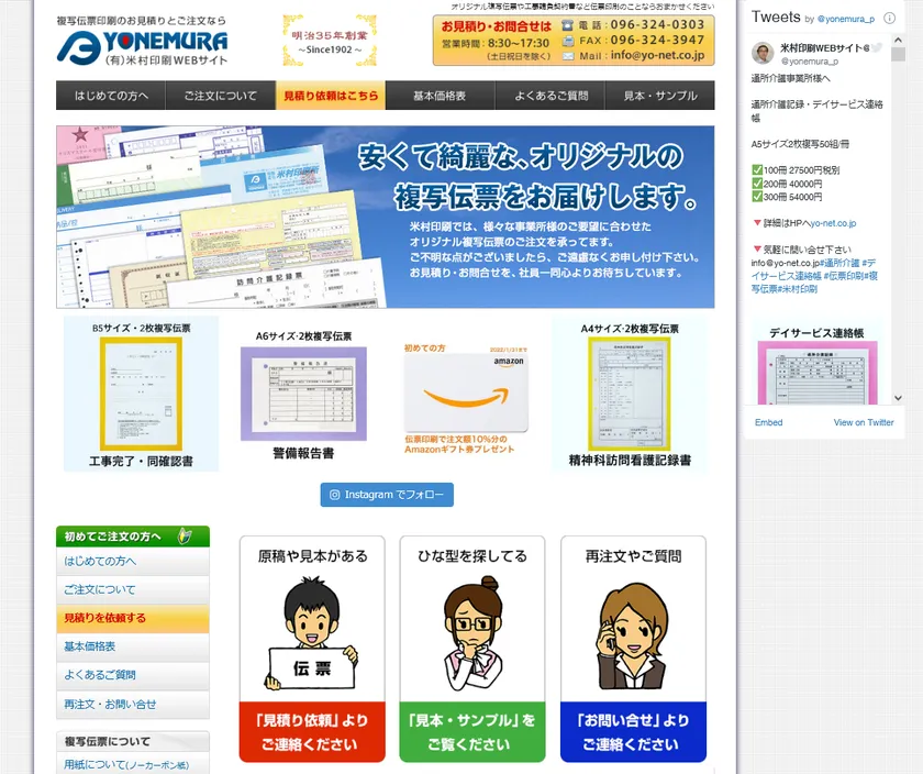 有限会社米村印刷所は明治35年創業、昭和38年法人設立の老舗印刷会社です。2004年にオリジナル複写伝票印刷専門の「米村印刷WEBサイト」を開設し、これまでに全国5,500社以上の法人企業から注文を受けています。