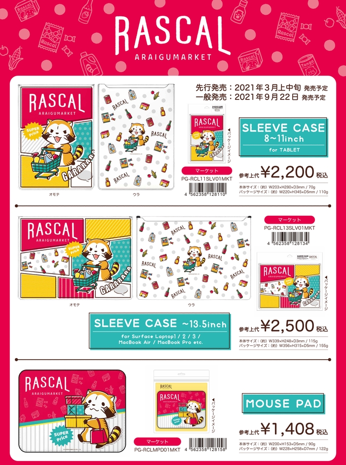 携帯電話やデジタルオーディオ端末等のアクセサリーの商品を企画・製造・販売を手掛ける株式会社PGA(本社:横浜市都筑区、代表取締役:黒木 光)は、このたび日本アニメーション株式会社とのライセンス契約により、『あらいぐまラスカル』のキャラクター「ラスカル」のパソコン関連アクセサリー6種を2021年9月22日より発売いたします。