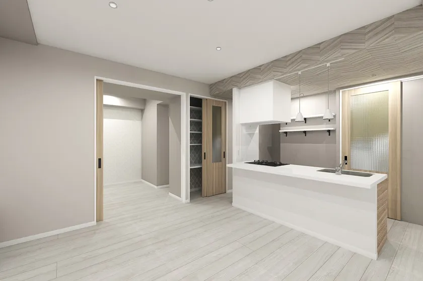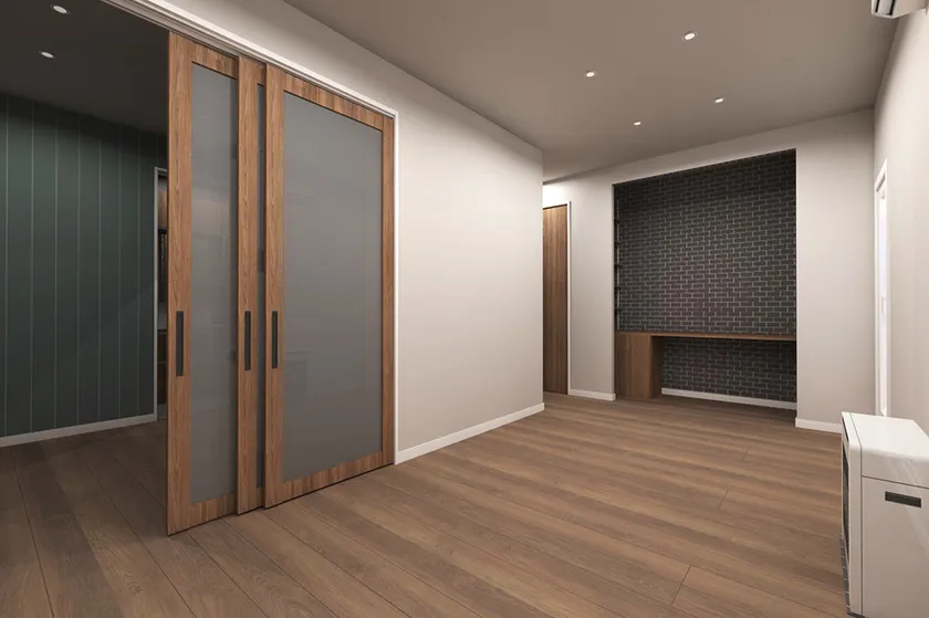 天井高さに合わせたハイタイプの建具も部屋を広く感じさせる工夫の一つです。
