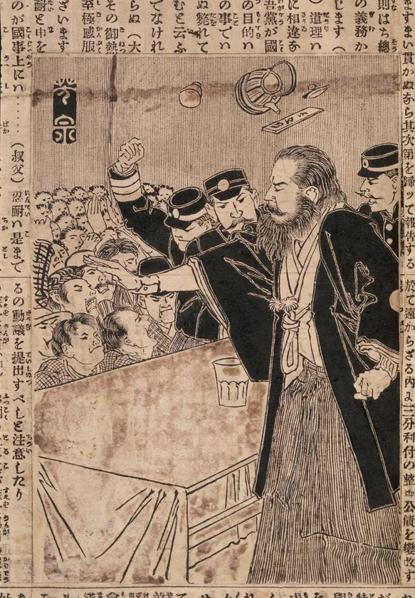 自由民権運動の討論会『絵入自由新聞』1507号明治21.3.14恋の革命挿絵東京大学法学部附属明治新聞雑誌文庫所蔵