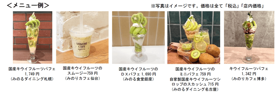 フェアでは、爽やかな甘酸っぱさが人気の「ヘイワード」を使用した限定メニューを各店舗で提供します。各産地のキウイフルーツは、JA全農が運営する産地直送通販サイト「JAタウン」でも購入できます。(https://www.ja-town.com/shop/f/f0)