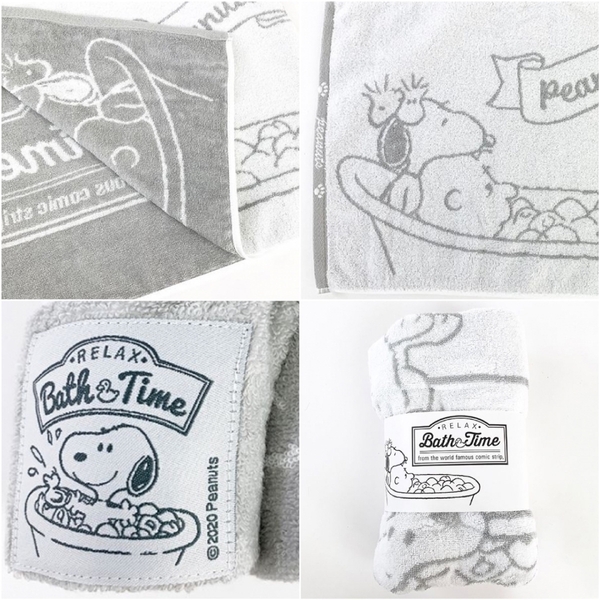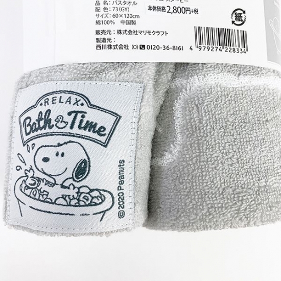 お風呂でゴキゲンなスヌーピーのタグ付きです♪楽しそうな表情がかわいいですね♡程よい厚みで吸水性もあるので、オススメです。