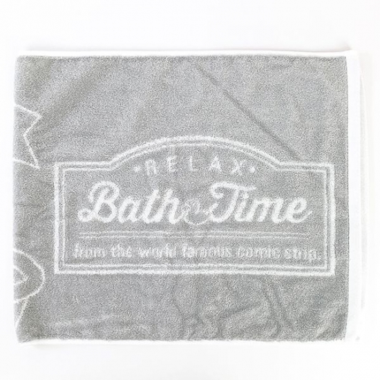 バスタイムのロゴもついていて、オシャレですね。グレーの縁取りもシックで、ホテルのタオルのようです♪