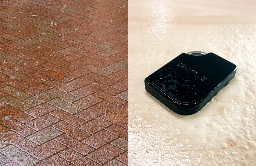 SKYTAGは撥水仕様なので、探し物が万が一屋外に放置されていても安心です。