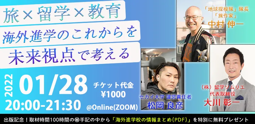『海外大学進学のススメ』出版記念トークライブ 「旅×留学×教育」海外進学のこれからを未来視点で考える 1月28日(金)にオンラインで開催!