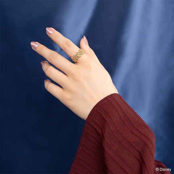 リングは、ほうき達が水を運ぶシーンを立体的にデザイン。「ミッキー」が慌てふためく作中の印象的なシーンが目に浮かぶ、遊び心あるファッションリングです。シルバーにイエローゴールドコーティングを施した仕様で、カジュアルに楽しめます。