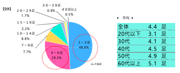 1年以上履かない靴がある女性1-3足が48%
