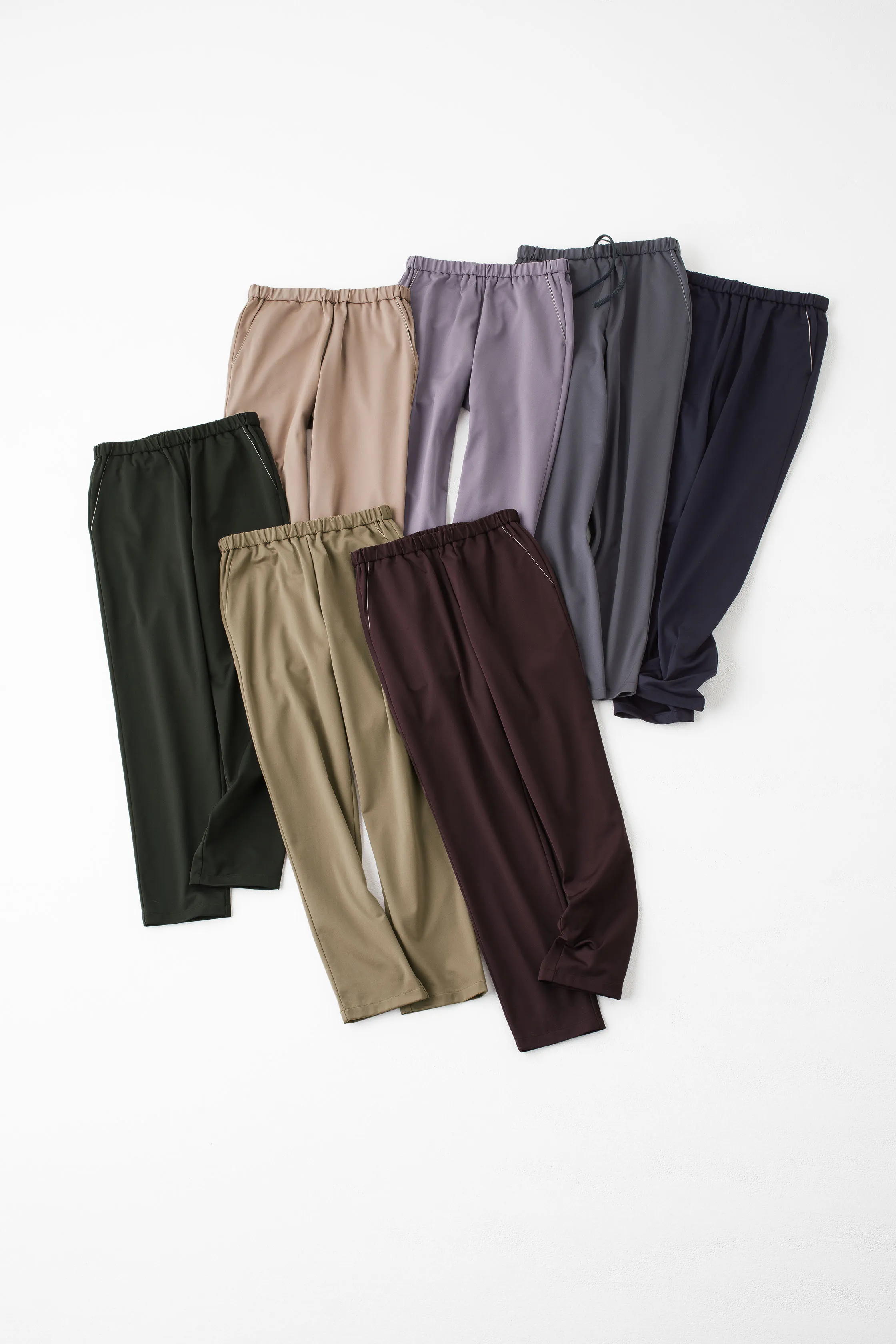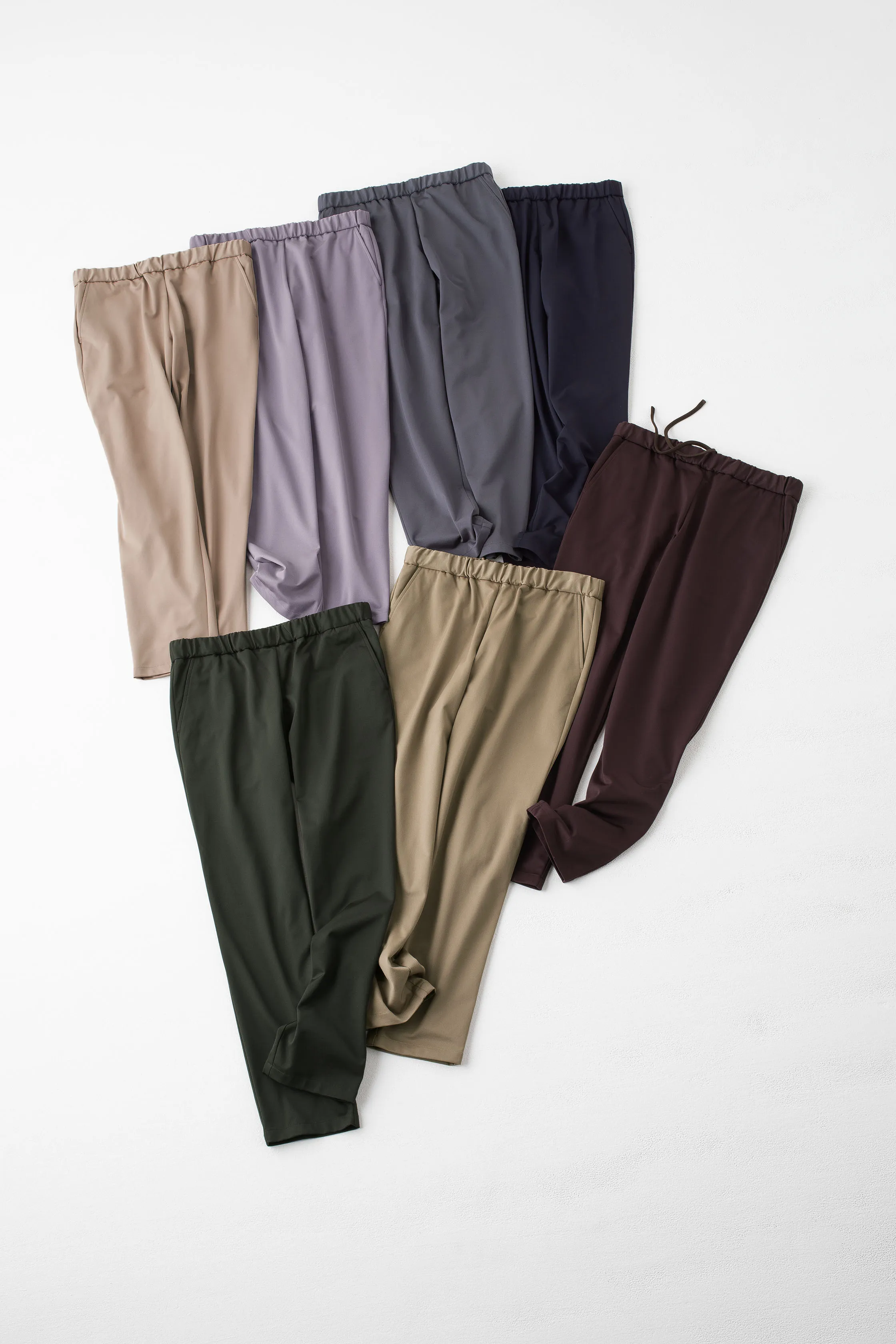 デザインは腿から裾に向かって細くなり美脚効果のあるテーパードシルエット。
