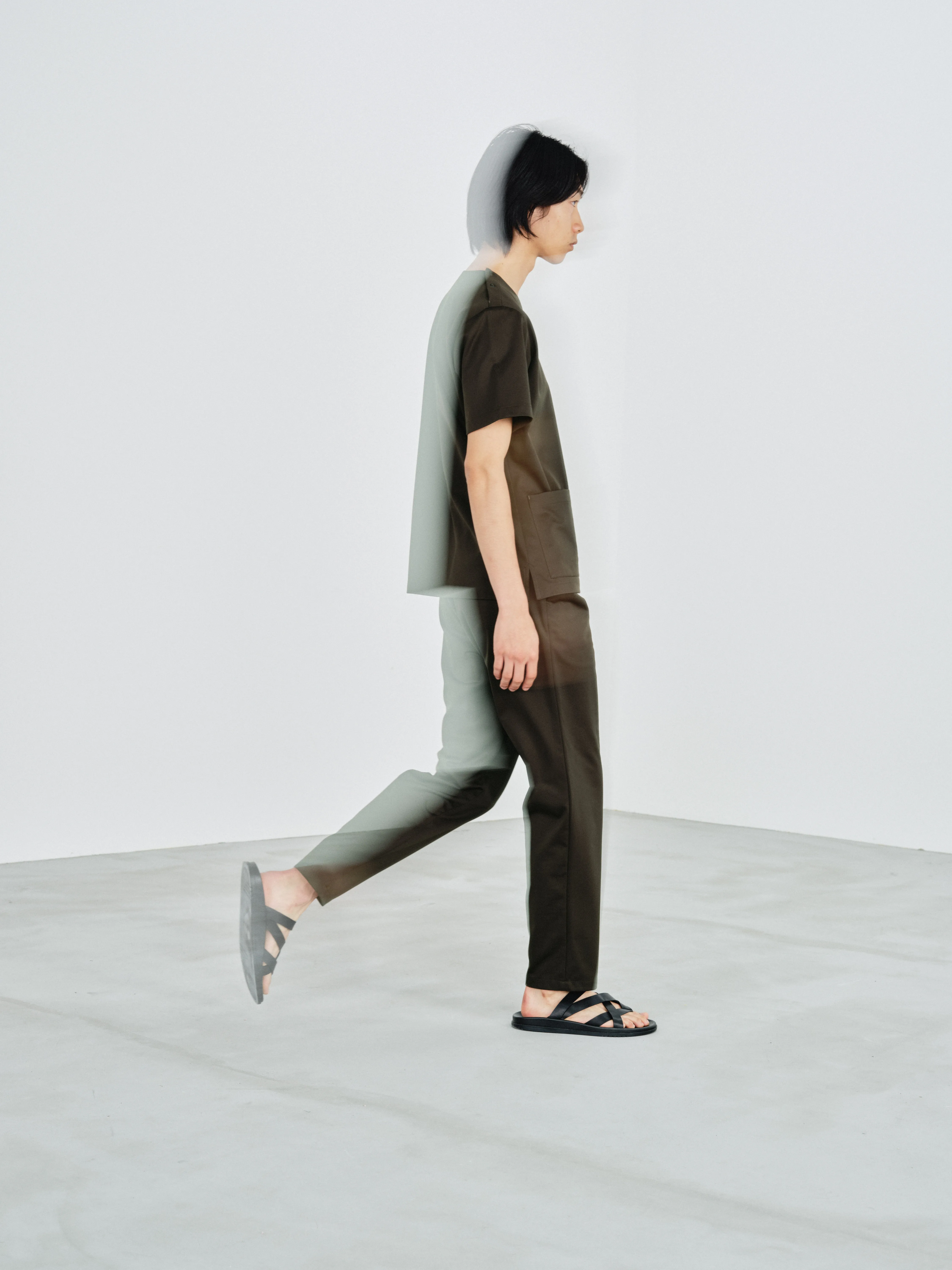 デザインは腿から裾に向かって細くなるすっきりとしたテーパードシルエット。ワタリ・膝・裾のバランスを従来より細みに見直しました。ウエストは脱ぎ履きが楽で着心地のよい総ゴム仕様。ポケットは右後ろに1つ、前脇に2つお付けしました。上質で快適な素材とモードでスタイリッシュなデザインがマッチした、新しいスタイルのスクラブです。