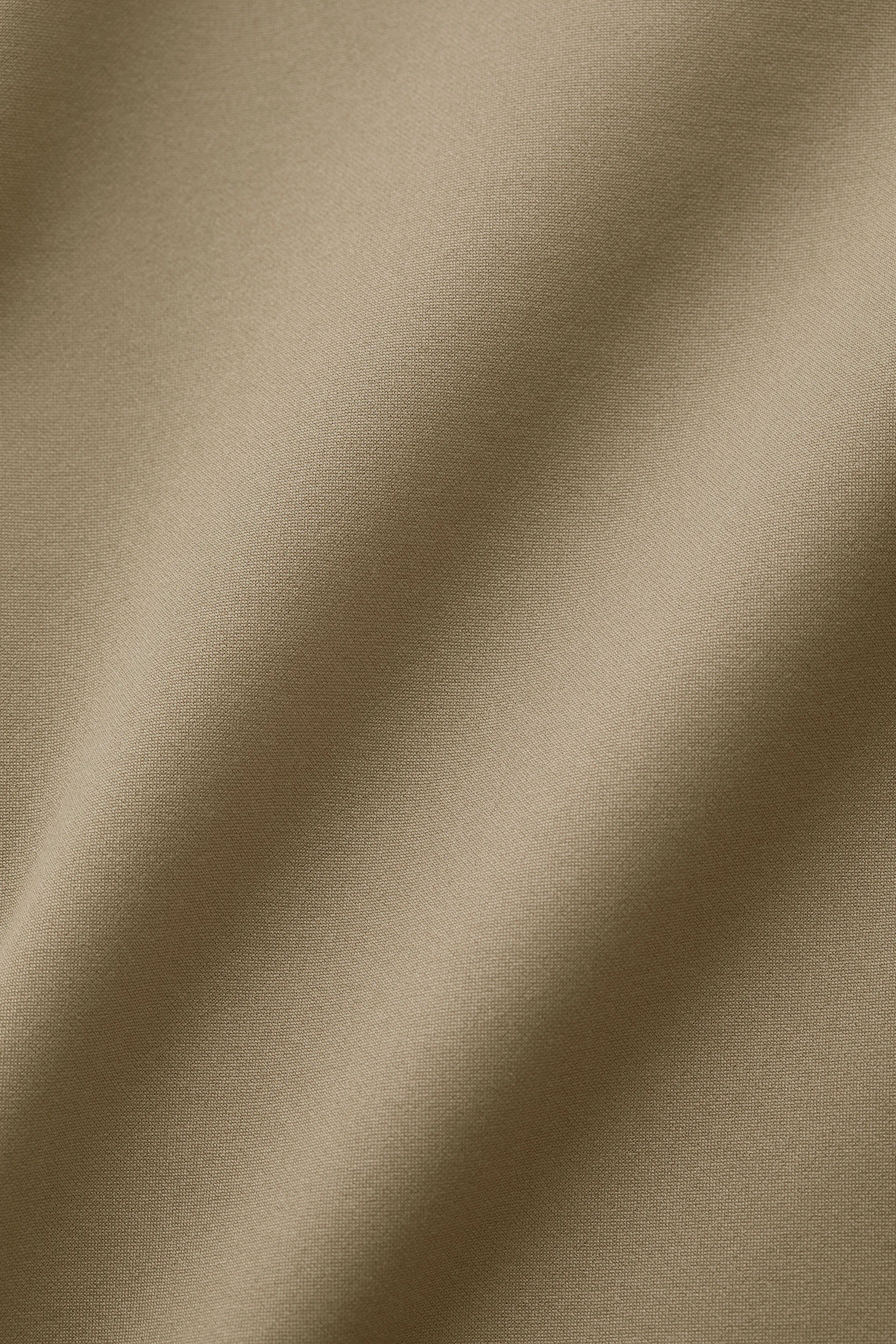 脇ポケット口にはバイカラーのパイピングを挟み込み、さりげなくエレガントなディテール。ウエスト紐は内側で、すっきりとした印象に。