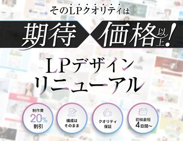 この度、既存のランディングページ(LP)を活用した新しいLPリニューアルサービスが公開されました。当社のサービスは、クオリティ満足度、制作スピード、コストパフォーマンスの3部門でNo.1を目指し、顧客のニーズに応える高品質なリニューアルプランです。