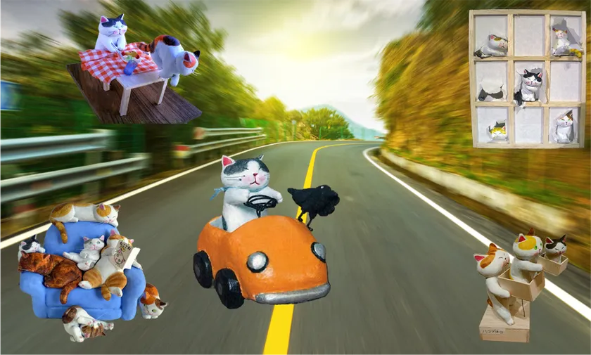 高橋さんは、猫の一瞬の姿態をモチーフに彼女ならではのユーモアやダジャレの要素を加えて作品をつくりあげるという独自のスタイルを確立。ただ猫の姿をとらえただけではなく、そのポーズやタイトルに高橋さんらしいユーモアやダジャレが表現されることで、特別な猫たちの世界が広がっています。思わず頬が緩むその造形やタイトル。身近な暮らしのシーンから、著名な小説の一場面などを切り取り、その雰囲気をコミカルに、あるいは叙情的に表現し、見る人の心に訴えます。高橋さんに導かれて、世界各国の読者・受講者がそれぞれの国の言語でダジャレやユーモアを使ったタイトルを付け、独自の粘土猫作品を制作してくれることを期待しています。そこには、私達との相違点や類似点などを示唆する貴重な情報が含まれていることでしょう。