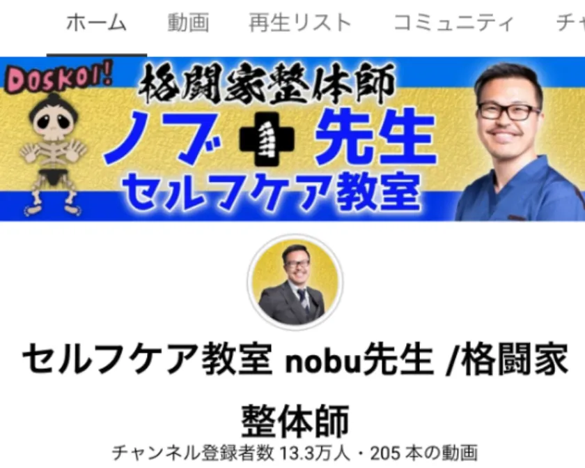「セルフケア教室nobu先生/格闘家整体師」 2022年1月にYouTubeチャンネル登録者数13万人を達成し、 TikTokでも「コロナワクチン注射痛み解消」が300万再生を突破