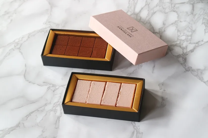 どちらも口当たりがなめらかで、口に入れるととろける、特別なチョコレート時間をお楽しみいただけます。バレンタインのプレゼントに、ご自分への贅沢なご褒美に、CHOCOLATERIE SANDGLASSだけでしか味わえない「ビナショコラ 生チョコレート」を存分にご堪能ください。