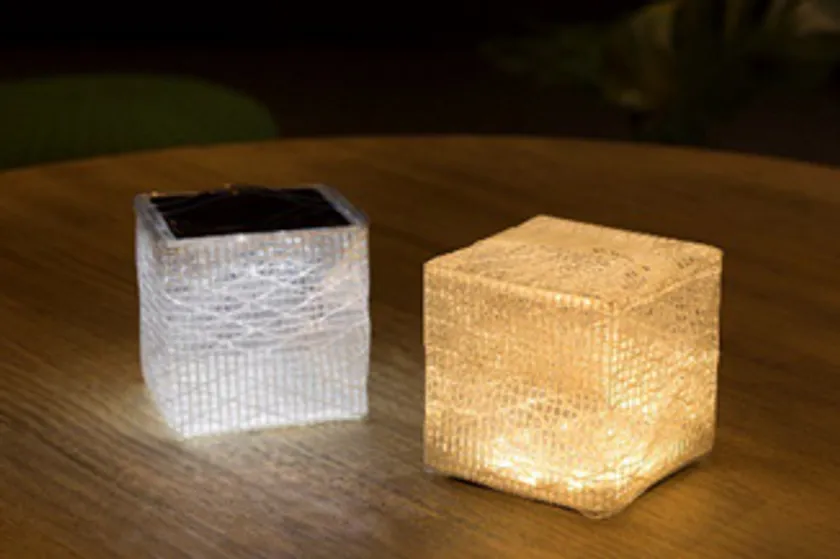 軽量で折紙のように畳んで持ち運びでき、防塵・防水機能を持っており、防災、アウトドアで人気の高い商品です。また、デザイン性が高く、インテリアやイベント装飾など多様な場面で使っていただいております。販売価格:4,290円(税込)