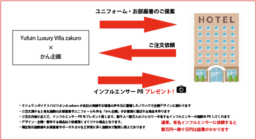 「Yufuin Luxury Villa zakuro」×「株式会社かん企画」 ミシュランガイド2018大分・熊本版5パビリオン宿が 衣類の企画制作会社の事業継承を実施 国内のホテル・旅館施設に向けた新たな取り組みを開始