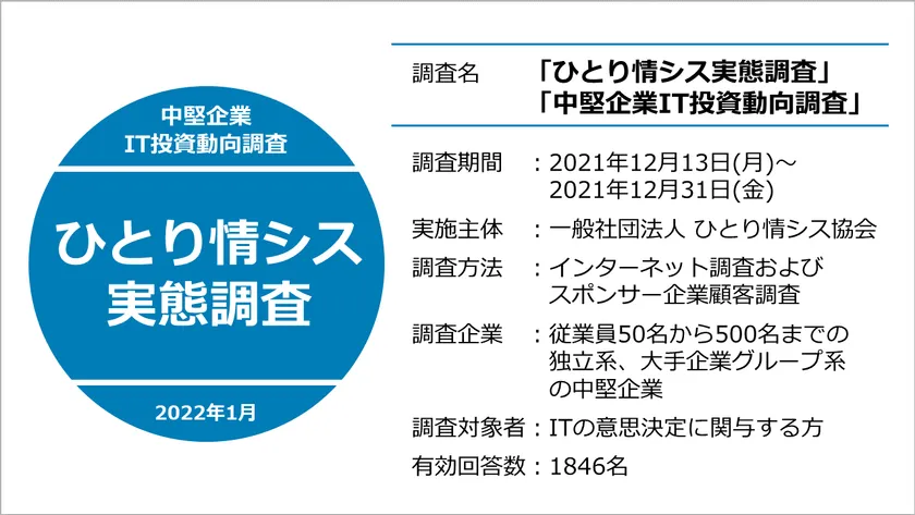 ・調査名 :「ひとり情シス実態調査」、「中堅企業IT投資動向調査」